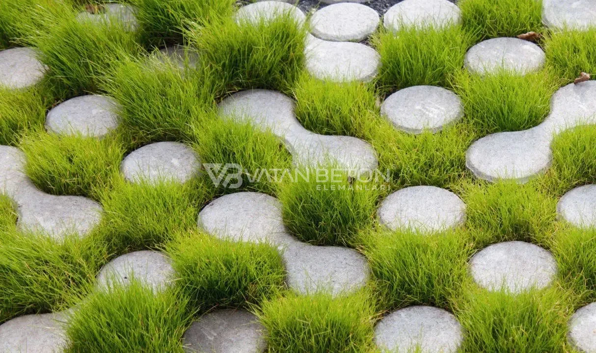 Özellikle peyzaj düzenlemeleri, site içi yollar, otopark alanları ve bahçe uygulamalarında tercih edilen beton çim taşı, zeminin hem yeşil kalmasını hem de araç ve yaya trafiğine karşı dayanıklı olmasını mümkün kılar.